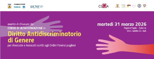 Diritto antidiscriminatorio di genere per avvocate e avvocati agli Ordini Forensi pugliesi