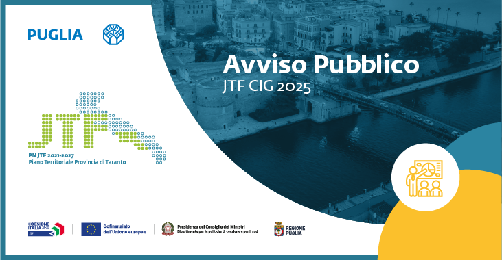 Avviso pubblico JTF CIG 2025 - Formazione a sostegno dei lavoratori coinvolti in situazioni di crisi o riorganizzazione aziendale, a rischio di espulsione dal mercato del lavoro della Provincia di Taranto